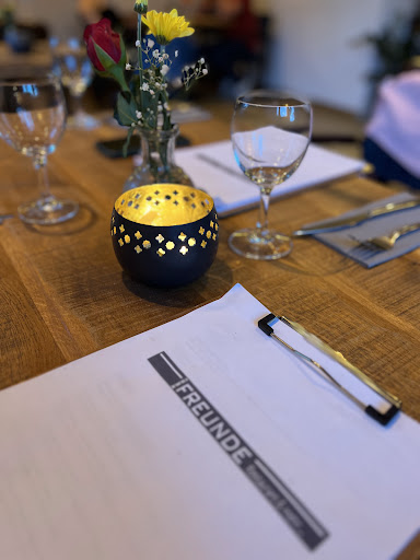 Wir waren heute das erste Mal zu sechst bei den Zwei Freunden essen. Der Gastraum ist dezent geschmückt, die Musik in angenehmer Lautstärke und die Stühle sehr bequem. Die Bedienung war sehr freundlich und zuvorkommend. Die Weinempfehlung war sehr versiert. Trotzdem durfte vorher probiert werden ( was an der Empfehlung allerdings nichts geändert hat :-) ) Es wurden Vorspeise, Hauptgerichte und Nachtisch bestellt. Die Gerichte wurden zeitlich optimal serviert und Sonderwüsche wurden alle berücksichtigt. Beim Rumsteak war der Unterschied zwischen "medium" und "medium plus" perfekt, die Gänsekeule war sehr zart und nicht überwürzt, die Rouladen saftig und sehr gut abgeschmeckt. Als Nachtisch haben wir Eis kombiniert mit einer selbstgemachten Erdbeersauce bestellt, die eigentlich zu Cheesecake gehörte - sehr lecker! Unser Fazit: eine kleine, überschaubare Karte, die durch sehr leckere Gerichte überzeugt ( Qualität statt Quantität), toller Service, angenehmes Ambiente und akzeptables...