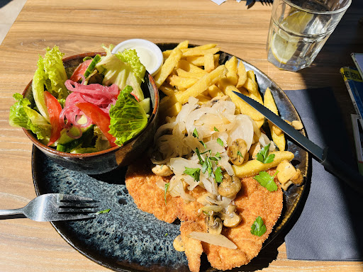 Aber gestern ging es gar nicht! Wir waren kurz vor 15 Uhr dort. Ein Mann stand schon auf mit den Worten "Dann fahre ich eins weiter". Ja, es war voll, aber jeder ankommende Gast bekam einen der ca. 15-20 Tische ohne zu warten, wir auch. Das haben wir schon voller erlebt. Dazu 4 Kellner, das sollte locker reichen für einen reibungslosen Betrieb. In den ersten 15 Minuten am nicht abgeräumten und nicht gewischten Tisch haben wir die Kellnerin 3 mal angesprochen. Da nichts passierte haben wir den Kellner angesprochen. Sprach nur Englisch, war aber sehr nett. Hat abgeräumt und gewischt und versprach die Kellnerin zu schicken. Nach weiteren 10 Minuten haben wir uns eine andere Kellnerin geholt. Die brachte irgendwann dann auch Karten mit dem Hinweis, dass Süßkartoffelpommes aus sind, OK. Getränke bestellt, die kamen auch nach weiteren 10 Minuten. Dann passierte wieder nichts. An den anderen Tischen das gleiche, der Nebentisch bemerkte lautstark, dass er mal bedient werden möchte. Nach und nach durften andere Tische bestellen, wir immer noch nicht. Als wir die Kellnerin zu uns geholt hatten hieß es dann "wie essen? Küche hat doch ab halb 4 zu, sie können nur Pizza haben". Wir wollten Pizza bestellen, durften wir aber nicht. Die Kellnerin wollte unbedingt vorher KURZ fragen, wie viele Pizzen er noch hat. Die nächste viertel Stunde ging die Kellnerin dann Gläser räumen, Tische abräumen, hier und da kassieren, bei anderen Bestellungen aufnehmen und sich mit der Kollegin unterhalten. Nach über einer Stunden wollten wir zaheln, aber das war wohl auch schon zu viel. Wir haben dann das Geld auf den Tisch gelegt und sind gegangen. Eine absolute Service Katastrophe, auch an den anderen Tischen, obwohl eigentlich genug Personal da war und ja nicht mal Essen raus ging. Sehr sehr schade, wir werden uns gut überlegen, ob wir noch mal...