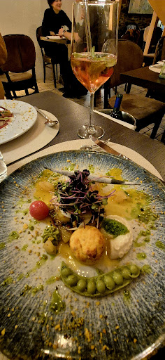 Read moreWir waren eine nette Truppe und reservierten für 8 Personen. Ein schönes Ambiente, keine Frage. Nach dem Blick auf die Karte dachte ich, so ein Scherzkeks hat die zweite Seite herausgerissen. Mitnichten. Eine sehr überschaubare Karte. Vorspeisen, Zwischengang, Hauptspeisen und Desserts passten auf eine Karte. Die Spucke blieb mir weg, als in der Karte für ein Saftschorle 0,5l, egal welche Geschmacksrichtung (Apfel, Mango, Rhabarber etc.) 6.90 aufgerufen wurde. Die halbe Bier ist deutlich billiger. 0,75 l Wasser schaffte es im Vergleich gerade noch, billiger zu sein als alkoholische Getränke. Das Wasser wird in einer tollen Flasche serviert, dieses wird aber nicht in einer "ungeöffneten" Flasche serviert sondern mit einem Korken drauf. Ein Schelm wer Böses dabei denkt. Warum nicht eine verschlossene Flasche mit Etikett so wie es eigentlich vorgeschrieben ist?