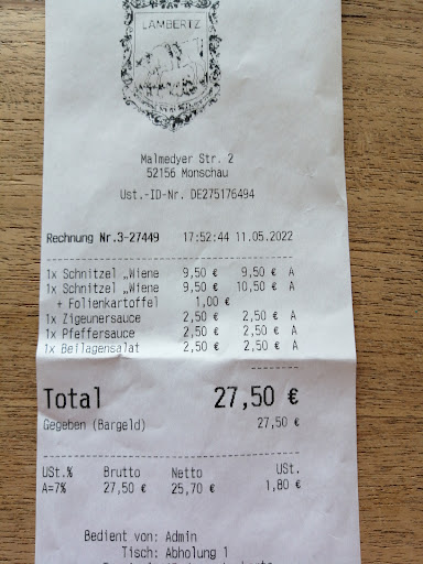 Read moreNaja...waren nach einer Vennwanderung hier essen, weil überall anders alles ausgebucht war, hier gähnende Leere, macht schon skeptisch. Essen bestellt nach Tagesgericht, da geht man ja davon aus, dass das gut und frisch ist. Das Fleisch im Hirschgulasch war leider total zäh. Der Rosenkohl schmeckte total verbrannt, ebenso die Birne. Rotkohl und Kroketten ok, da kann man ja auch nicht viel falsch machen. Käsespatzle eines Bekannten waren leider nicht heiß und schmeckten gar nicht, wie Fertigware. Dazu viel zu hohe Preise. Kindergericht über 10€, gibt es sonst in keinem Monschauer Restaurant . Dann brachte der Kellner 2x kein Besteck, mussten jedes Mal danach fragen. Auch der Nachtisch (Mousse au chocolat ) überzeugte nicht . Das Preis - Leistungs- Verhältnis stimmt leider gar nicht . Schade