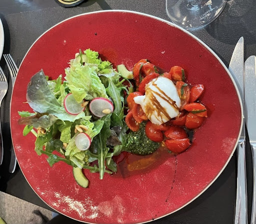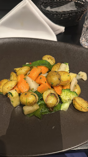 Read moreAus der Sicht einer Veganerin muss ich leider sagen, dass dieses Restaurant absolut keine Option ist. Auf der Karte gab es lediglich ein veganes Gericht, das mir jedoch nicht zugesagt hat, weil es eigentlich als vegetarisch in der Karte stand, aber auch vegan zubereitet wird, indem alles an Saucen weggelassen werden würde, also wurde etwas aus den Beilagen anderer Gerichte zusammengestellt. Das zusammengestellte Gericht bestand aus Kartoffeln, Brokkoli und Karotten, was ich so nie bestellt hätte, wenn es etwas anderes auf der Karte gegeben hätte. Das Gericht war genau das, angebraten in Öl und gewürzt mit Salz und Pfeffer, was ich mehr als unkreativ finde, denn das schafft jeder Leihe. Darüber hinaus war das Gericht im Geschmack ebenfalls fade und ölig und auch nicht schön angerichtet. Es sollte dann aber 22€ kosten, was ich mehr als frech finde. Ich gehe in ein Restaurant, um Auswahl und Abwechslung zu haben. In diesem Restaurant wurde mir nicht mal die Dienstleistung des Zusammenstellens eines Gerichts abgenommen, diese musste ich mehr oder weniger selbst erbringen, indem ich mir Beilagen aus anderen Gerichten zusammensuche. Das Essen war dann auch nichts besonderes, wie in einer Kantine, aber mit 22€ absolut überteuert. Vom Preis-Leistungs-Verhältnis das schlechteste Restaurant, in dem ich je war, daher wirklich nur 1 Stern für das schöne Ambiente, für das Essen keinen.
