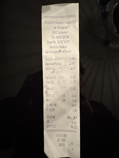 Read moreWaren heute mit 6 Personen und 3 Schlemmerblöcken dort essen. Durchweg war das Essen nicht gut... Der ältere Herr (Wirt) fragte wie das Essen geschmeckt habe. Ich habe gesagt das Fleisch sei zu trocken. Daraufhin wurde er laut und übergriffig. Er ging, kam wieder, fragte alle anderen auch. Alle waren über dieses Verhalten geschockt. Bis auf meinen Sohn wollte niemand mehr das sagen wie das Essen wirklich war. Niemand wollte noch mehr Stress! Das Essen war wirklich schlecht ( Fleisch trocken , zäh, definitiv nicht frisch zubereitet..) Gläser Cola Zero alle in unterschiedlichen Gläsern ( Bierkrug, Weizenbierglas...) Auf der Rechnung waren dann immer eine 0,2 und 0,3 Cola Zero verbucht. So summiert es sich auch. Der Wirt blieb die ganze Zeit unfreundlich. Mein Kumpel sagte dann irgendwann: Wenn er eine Meinung nicht vertragen kann, soll er nicht fragen. Das Einzige was allen positiv aufgefallen ist, war die Gastfreundschaft des Sohnes... Vielleicht sollte sein Vater ( der Wirt) , seinen Sohn mal Fragen wie man die Gäste höflich bedient! Er scheint es zu können! Ergebnis von diesem Abend: Es gibt viele wirklich gute griechische Restaurant im Umland. Geht dort hin. Wir werden hier definitiv nicht...