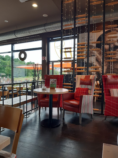 Read moreEs gibt eine unfassbar große Auswahl an unterschiedlichem Essen. Aber umgehauen hat mich nichts. Hier gibt es keine Soja-/Hafermilch für den Kaffee. Ich würde ja denken dass viele Touristen (wegen dem Outlet) das nutzen würden und die Lokalität auf die Gäste reagiert. Wir hatten zu zweit ein Frühstück - das war so unfassbar lieblos auf dem Teller. Das Personal war nicht besonders freundlich (u.a. wurden wir erstmal eher unfreundlich darauf aufmerksam gemacht, was wir zu machen haben, wenn wir vor Ort essen möchten - wegen Covid Bestimmungen. Könnte man auch einfach netter sagen). Der mit den Daten ausgefüllten Zettel lag während der ganzen Bedienung hinter dem Tresen offen einsichtbar. Wie wäre es wenn, ihr einfach Boxen direkt mit Schlitz habt und die dann direkt dort einwerft statt da so liegen zu lassen!? Knaller ist dann auch die Abwicklung der Bestellung. Es war sowieso schon sehr langsam aber dass man die Getränke während dem Rest der Arbeit nicht durchlaufen lässt, ist mir ein Rätsel (kenne das eigentlich nur so). Stattdessen wird erst alles andere auf das Tablet gestellt und dann die Getränke gemacht und die Bedienung schaut dabei zu. Generell schien sehr viel Personal vor Ort zu sein, der aber nicht wirklich für einen schnellen, angenehmen Bestellungsprozess sorgt. Ich frage mich, wie lange alles dauert wenn mehr Gäste da sind. Die extreme Lautstärke ist auch unglaublich. Das einzige wirklich überraschend tolle war die Spielecke (die ja auch verständlicherweise aktuell...
