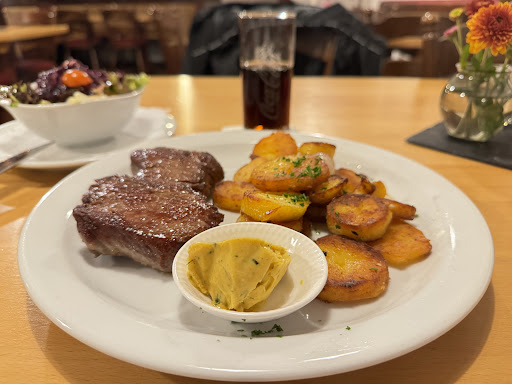 Nun ja, an Bilder habe ich leider nicht gedacht......egal. Rustikales deutsches Ambiente... Wir waren am Aschermittwoch dort, haben unser Glück ohne Vorbestellung versucht. Wir mussten etwas länger warten weil das Lokal voll war, aber das war unsere eigene Schuld. Zum Aschermittwoch dort wohl normal dass es voll wird, für uns Norddeutsche eher ein normaler Tag. Aber gut, selber Schuld wiegesagt. Ein, zwei Bierchen gab es aber zur Überbrückung der Wartezeit am Tresen. Leider gab es dann zur Speisen- Auswahl nur "Karnevalskarten" und die übliche Speisekarte war ausser Kraft gesetzt. Im Angebot also z.B. Sahnehering, zweierlei verschiedene Schnitzel, Rumpsteak und ein oder zwei Sachen mehr. Ich hatte das Jägerschnitzel mit Bratkartoffeln. In Karnevalsstimmung bin ich davon nicht gekommen. 17,50€ für eine Portion die ich für mich eigentlich als Vorspeise einstufen würde. Kleines Schnitzel und eine Suppenkelle voll Bratkartoffeln. Die Kartoffeln waren eine ungleichmäßige Mischung aus total dunkel gebraten und blass wie Salzkartoffeln. Salz hat jedoch so gut wie ganz an dieser Mischung gefehlt. Die Sauce war sparsam, stippig, nicht homogen. Das Essen war schlichtweg enttäuschend, gerade für den aufgerufenen Preis! Mein bayerischer Kollege beklagte die zu salzigen Sahneheringe. Die Portion aus meiner Sicht zudem auch da etwas übersichtlich. Insgesamt für mich alles in allem zu wenig..... Der Chef und Koch ist eine Frohnatur aus der Dominkanischen Republik und macht da den ein oder...