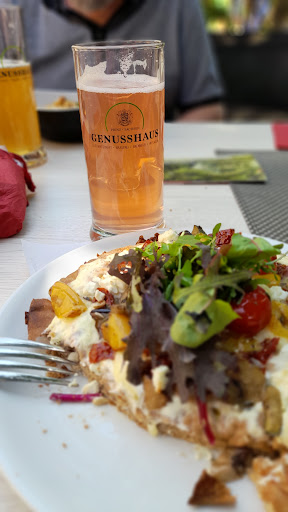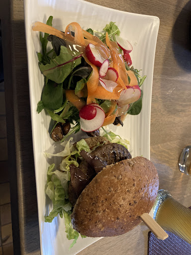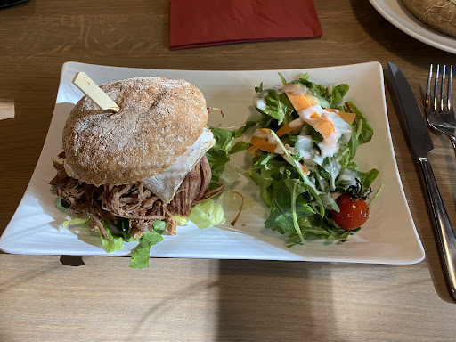 Read moreSehr tolles Restaurant. Wir haben gar nicht so viel erwartet und wollten nur eine kleine Stärkung einnehmen, da wir schon ein paar Kilometer in den Beinen hatten und uns das Schloss Moritzburg gestärkt ansehen wollten. Aber dann durften wir diese beiden tollen Gerichte essen. Der Burger ist mit Wildschweinfleisch belegt, dazu Camembert und Preiselbeersauce und Salat. Diese Kombination klingt nicht nur gut, sondern schmeckte fantastisch. Ich musste mich direkt zu der Äußerung hinreißen lassen, diesen Burger als den besten in meinem Leben zu bezeichnen. Aber auch dieses unglaubliche Pfannenbrot darf nicht unerwähnt bleiben. Erst dachte ich es sieht vielleicht ein wenig trocken aus, aber es war so fluffig und saftig. Beides sehr empfehlenswert und ein Besuch in diesem Restaurant...
