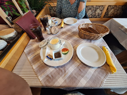 Read moreWir kam zufällig auf einer Tour vorbei, kurz bevor geöffnet wurde, aber bereits eine Gruppe Rentner aus einem Pferdewagen hineinging. Wir hinterher. Das Haus hat ein Ambiente aus einem Mix der 70er-Jahre und neuen Spritzern und Accessoires, alles sehr schön gepflegt und sauber. Es war ein Brückentagsfreitag und 30min. nach Öffnung war der Gastraum komplett gefüllt. Die Speisen und Kuchen haben uns überrascht - Zwiebelkuchen und Federweißer, Schoko-Buttercremétorte, Kochkäse - alles sehr gut, hausgemacht von hoher Qualität, auffallend hervorragend war der Käsekuchen. Für mich, als sehr wählerischen Kaffeeliebhaber, stach der doppelte Espresso glänzend heraus! Einer der besten, die ich irgendwo genießen...