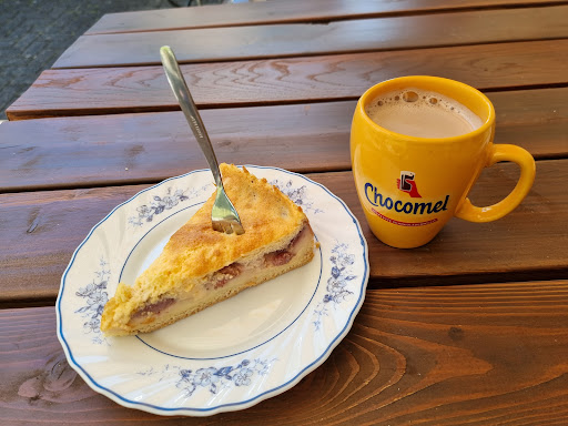 Für all das kann das Café nichts. Essen und Preise sind okay. Man bestellt alles an einer Theke. Es gibt Zeitschriften, tw schön alt, aus den 80ern...