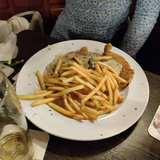 Read moreDas Schnitzel ist wirklich das beste Schnitzel was man in Münster so bekommen kann. Knusprig und einfach sehr gutes Fleisch. Der halbe Hahn (Hausgericht) ist auch ausgezeichnet lecker sowie die lecker gesalzenen Pommes. Die Getränke sind leider etwas teuer z.b. zahlt man echt viel für eine Große Cola. Allerdings ist dafür das Schnitzel gemessen an dem was man bekommt total fair vom Preis. Die Bedienungen müssen sich allerdings mal ein bisschen mehr konzentrieren. Teilweise werden Kunden gar nicht beachtet, Essen erst nach einer Stunde gebracht und sogar die ganze Bestellung wurde beim Tischnachbarn mal vergessen an einem Tag wo echt nicht viel los war. Auch könnte man vielleicht mit einem Hemd oder sowas ein bisschen mehr hermachen als mit einem schwarzen Tshirt und einem eher „unpassenden“ Outfit für so ein traditionsreiches Lokal.