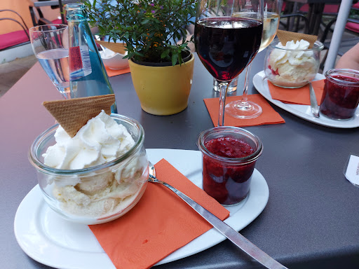 Read moreAuf einer Fahrradtour bin ich hier vorbeigekommen. Das Eis und der Cappuccino waren sehr lecker, auch wenn ich dafür ganz schön tief in die Tasche greifen musste und die Eiskugeln sehr klein für den Preis waren. Die Kuchen in der Auslage sahen übrigens auch echt lecker aus. Es gab an dem Tag nur die Möglichkeit draußen zu essen, drinnen war "gesperrt". Deshalb kann ich nicht viel zum Ambiente sagen. Außerhalb gibt es leider nur ein paar Bänke, die im Carré stehen (wie auf dem Pausenhof eines Betriebes). Die rauchenden Kunden verstanden es wohl eher als "ihre Raucherecke" und nebelten alle anderen Eisesser, egal ob groß oder klein, mit ihren Rauchschwaden ein. Dies hat die Freude, dass ich ein hübsches Café in dem kleinen Ort gefunden hatte, leider...