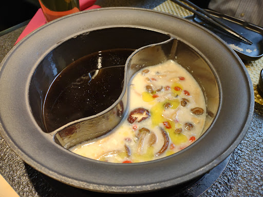 The hot pot was amazing same as in china. I ordered the combination hot ma la and non spicy pork Version soup with set. Super yummy. Very Fresh pork, lamb and beef slices and vegetables and toufu. The only thing I don't like is the prawns and fishballs are frozen. They are additional side dish for hot pot.