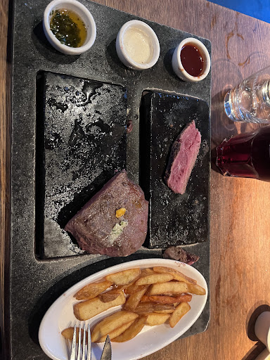 One of the standout features of this restaurant is that you get to cook your own steak at the table using hot stones. This interactive experience allows you to cook your steak exactly how you like it, which adds to the overall enjoyment of the meal. It's a great way to get involved in the process and have a bit of fun while you're dining.