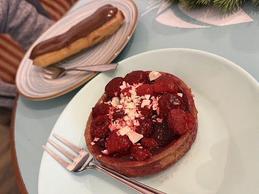 Read moreAmandìnes et Chocolats in Harlaching is a popular neighborhood French bakery serving up traditional French pastries as well as typical Bavarian pretzels (some even with butter). While on previous visits the quality - freshness and taste - of the pastries was always exquisite, this last visit was disappointing. The raspberry tarts looked beat up / damaged, the raisin swirl was dry and hard. The chocolate crème filled eclair was ok and tasted as expected. Unclear if it was the time of day that we visited, which was early afternoon after lunch for the lack of freshness. The inside had several guests including families with young children in strollers and a French tutor (this added a nice touch to the atmosphere). There is outdoor seating as well, which is popular in the summer / warmer months. Hoping this was just an off day for Amandines et Chocolats in Harlaching and that the normally enticing pastries taste and look fabulous on...