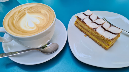 The entrance is via a walkway at the same level as the roadway. There's actually quite a large seating area inside with insightful sea paintings and outside with some tables under the sun. Surprisingly, it wasn't 100% full for a Sunday. They offer lactose-free dairy for coffee drinks for an additional 20 cents.