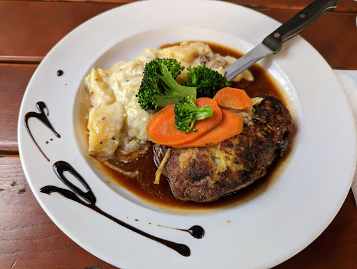 Bier: schlecht eingeschenkt Musik1: wenn sie denn mal an ist Musik2: 1 CD in Endlosschleife, keine(r) des Personal merkte, daß sie kaputt war Toilette: ungepflegt (bei "Andrang" Flossen nicht vergessen, sowas von ....) Handtücher: Endlosschleife am Boden Bedienungen1: viele Bedienungen bedienen lieber ihr Handy als die Gäste Bedienungen2: einige nett (Glück gehabt), andere: unprofessionell, unfreundlich Essen1: habe Kommentare gelesen (positive Zufallstreffer?) Essen2: am Nachbartisch hämmerte jemand an der verbrannten Lasagne rum Essen3: ich konnte das Fleischstückchen finden, hatte gottlob keinen Hunger Einrichtung: altbacken, alt halt .......... (so klappt das Wohlfühlen nicht wirklich) Wirt: war nicht da Und hört man Leuten am Tresen zu (schienen wohl erfahrene Ortsansässige zu sein), bestätigt sich dieses mein einmaliges Erlebnis. Ein Facelift und trading-up wäre hilfreich. Dann...
