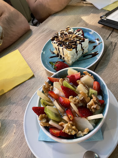 Als Dessert wurde ausschließlich Käsekuchen angeboten. Käsekuchen beim Griechen??! Dabei gibts doch gerade in Griechenland wunderbare Desserts wie Joghurt, Kataifi, Baklava etc....
