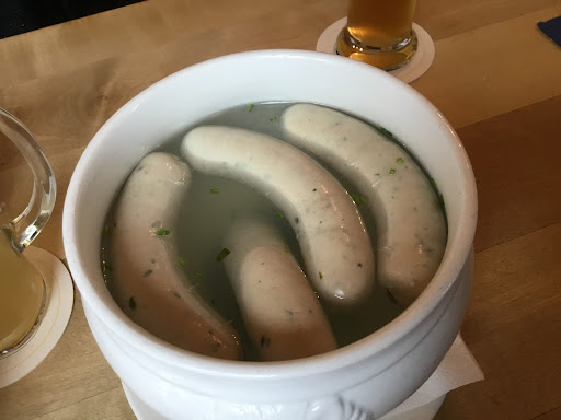Beginning of August we were passing through in between meetings for a late lunch. So what better than to try our their “Weisswurst.