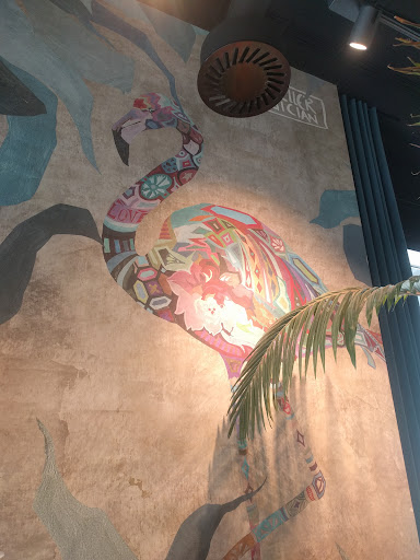 The best part of this place, however, is the cafe itself. The large and lofty seating area is beautifully decorated with cool light fixtures, a funky mural, and lots of plants. It feels hip, bright and urban.