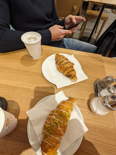 ⭐️⭐️ Wir waren hier um einen Kaffee bzw. Cappuccino zu trinken und eine Kleinigkeit zu essen. Der Kaffee war ok. Beim Ausgabetresen stand ein Becher mit Löffeln. Entweder haben diese Löffel sehr starke Gebrauchsspuren oder sie waren dreckig. Ich habe mir dann doch lieber ein Holzstäbchen zum Umrühren geholt. Das Salamibaguette sah in der Auslage gut aus, als ich es aufgeklappt habe kamen mir zwei Tomatenscheiben sowie Salat entgegen, die es meiner Meinung nach schon hinter sich hatten. Der Fußboden um unseren Tisch herum war, wie auch die Fensterscheiben, dreckig. Je genauer man hin sah, desto mehr ist einem aufgefallen. Zu guter letzt habe ich noch die Toilette aufgesucht... Schüssel und Fliesen verschmutzt, Handtuchspender ohne Papierhandtücher (lagen drunter in einer aufgerissenen Packung) und Seifenspender ohne Seife. Insgesamt habe ich sowas selten erlebt und würde dort nicht...
