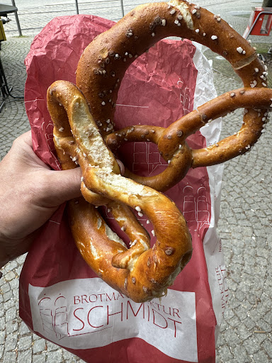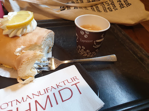 Heute am 3. Juni 2020 suchte ich diese Bäckerei auf, da mein Mann am Wochenende zuvor etwas entdeckt hat, was er ausprobieren wollte: nämlich war das die herrenschnitte. Ich wollte ihm heute eine Freude machen und habe zwei Stück gekauft nachdem ich von Wagners Obst und Gemüse (siehe Bewertung) rausgekommen war. Im übrigen interessiert mich diese herrenschnitte auch selbst – als Frau wohl gemerkt! Aber ich liebe nun mal dunkle Schokolade. Und mein Mann meinte, dass hier in jeden Fall Schokolade mit dabei sei. Es war schon spät Nachmittag, es war auch nicht recht viel los beim Schmidt und folglich kam ich auch sehr schnell dran. Als Verkäuferin hatte ich eine scheinbar etwas ältere Dame, die wohl… Naja… Sich schon ein bisschen auf den Feierabend freute. Trotz allem gab sie sich Mühe, sie half mir sogar noch meine Ware in den Rucksack zu tun und blieb gelassen. Und als ich merkte dass via Handy Radio Energy gestreamt wurde, hinterfragte ich auch ob immer Musik an sei. Sie reagierte nach dem Motto: böse Menschen kennen keine Lieder. Also neutral bis positiv. Update 10.06.2020 Im Übrigen war die Herrenschnitte ein Bisschen gar süß, Schokoüberzug könnte hell gewesen sein und Rotweincreme schmeckte auch zu wenig nach Rotwein und zu stark nach Zucker. Ein Bisschen Zuckerreduktion wäre für dieses Produkt also angebracht; sonst ist das echt kein schlechter Ansatz - egal ob Männlein oder Weiblein. Wir hatten außerdem mal zum Testen Laugensemmeln beim Schmitt geholt. Diese kosteten wir dann natürlich beim Frühstücken und stellten fest, dass dem Teig leider die Würze fehlt. Aber man sieht den Dingern an, dass sie handgeformt sind. Beides - also die handgeformte Machart (die hoffentlich auch stimmt) sowie Geschmack würden uns zu einem abermaligen Kauf verleiten... Fazit: Herrenschnitte im Grunde nicht schlecht, nur etwas sehr süß; Laugensemmeln schmecken ein Bisschen fad. Personal freundlich, Ambiente ist ok. Vielleicht sind andere...