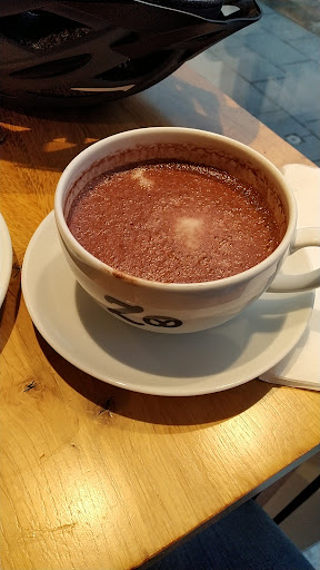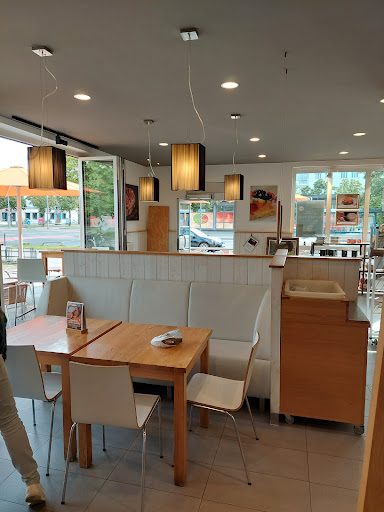 In den Räumlichkeiten war früher mal eine Bank. Schön, was mit dem Sitzbereich und der großzügigen Fläche draus geworden ist. Nur sehr warm ist es drinnen. Einen Außenbereich gibt es auch.