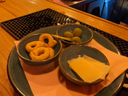 Mit großem Hunger sollte man nicht herkommen, es gibt nur eine kleine, aber gute "aperitifgemäße" Speisenauswahl. Wir haben die Pastachips gegessen, die waren sehr gut.