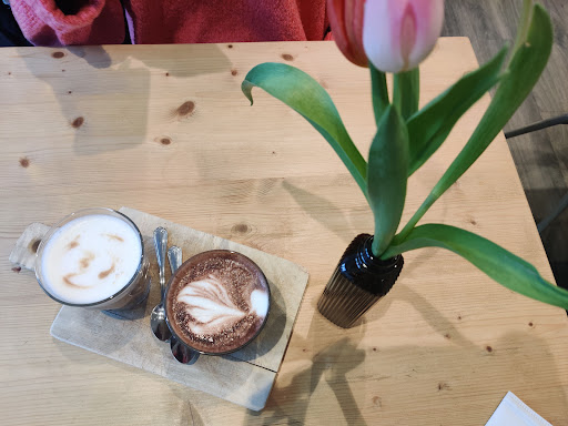 100% joie de vivre. I already came there last year with a friend who made me discover this place and I wasn't impressed at that time. This time it is different as I started to connect the dots and when I connect the dots, I am very happy, will share later why. So this place isn't in the city center (yeah!), it has plenty of room inside to sit on big tables or in comfy vintage chairs and read a good book while eating a delicious über moist chocolate cake with a decadent icing topped with crunchy nuts unless I am mistaken, crunchy chocolate beans? You can also sit outside if you prefer. It is quiet, not hipster like, it offers a great atmosphere to be content with. You have to order at the counter then come back there later to pay so a sort of self service but I don't mind. I haven't tried the coffee yet as instead I had a golden milk with curcuma freshly grated that made me feel less guilty to indulge with the chocolate cake. I know this is an illusion. And here is where I am connecting the dots. This place is near the nail salon Mina that is 5 min walk, a place that I highly recommend. I also found some instant coffee whose packaging matches randomly to my nails. A nice place to go over the weekend, enjoy a treat and read a good book. But I am aware I was in a good mood and relaxed and might not be totally objective. Edit 29.09. Came back with a friend and one star down as it confirmed me what I already felt the other day: service can be a bit improved. I am not complaining about the "Selbstbedienung" but service can be a bit more "proactive". However I will...