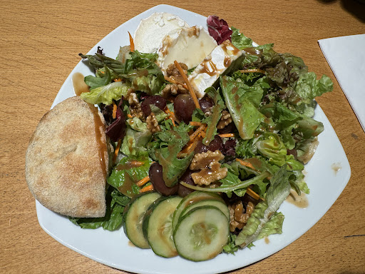 The Ziegenkäse Salat is my go to. It’s filling and delicious. It comes with a nice piece of pizza...