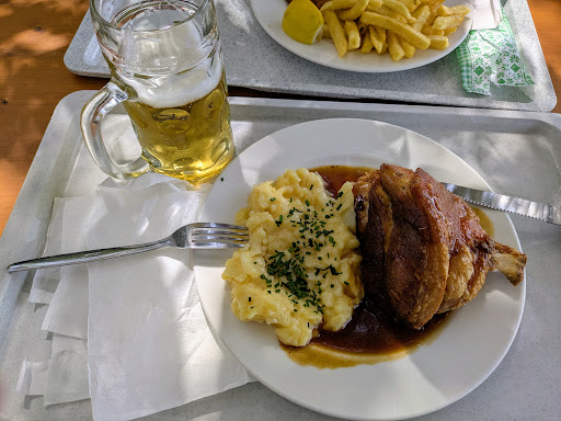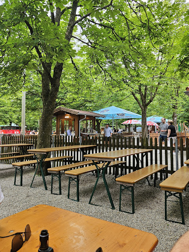 Hätten wir mal die Rezensionen vorher gelesen.. Nach vielen Jahren waren wir wieder hier im Biergarten. Das Ambiente ist ja wirklich schön und ich mag das großzügige Platzangebot unter schattigen Kastanien. Aber das Essen ist ja unterirdisch! Wir wollten nur eine Kleinigkeit und nahmen 2 Schüsseln griechischen Salat, einen kleinen Obazdn und zwei kleine Brezn. Beide Brezen waren nicht nur hart sondern steinhart. Sie waren nicht essbar. Dass der Obazda schon eine trockene Schicht hat, hatten wir beim Entnehmen schon gesehen, aber da alle Schälchen so aussahen, nahmen wir eben eine. Der Obazda hatte eine richtig dicke hart getrocknete Oberfläche. Nicht schön und wirkte alt. Geschmacklich allerdings ganz gut. Jeder der beiden Salate war ungenießbar. Die Tomaten waren alt/matschig und schmeckten leicht vergoren. Oliven und Feta keine gute Qualität aber essbar. Die Salatgurken schmeckten wie das viele Wasser, das in der Schüssel war, total sauer. Also auch hier: Finger weg! Vermutlich werden Sie auch bei meiner Rezension kommentieren, dass wir uns an die Ausgabe wenden sollten, da uns nur dort geholfen werden kann. Ich aber möchte Ihnen sagen, ich finde es eine Zumutung für Gäste, ihr gesamtes angegessenes Essen quer durch den ganzen Biergarten zurück zur Ausgabe tragen zu müssen, um sich dort beschweren zu müssen. Ich würde Sie im Gegenzug bitten, an der Qualität Ihres Essensangebots zu arbeiten.