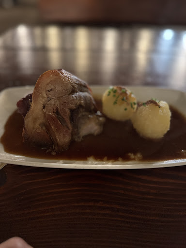 However, I did encounter a significant wait for my food—about an hour, to be precise. The presentation of the dishes was notable, with every table showcasing a consistent flair. Although my schweinhaxen could have been crispier, it still brought a satisfying taste to the experience.