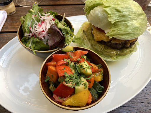 Eventually I ordered the Hulk lettuce burger with a side of roasted veggies (waiter did not know whether or not fries contained gluten). It was quite tasty! I enjoyed the sharp cheese and smooth avocado cream. The veggies were a tad bland and the burger patty had a fair bit of cartilage. All in all, I was expecting a bit more for the price, but the quality of the ingredients was fair.