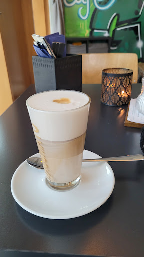 Read moreDa ich in der Gegend wohne, gehe ich hier immer mal wieder hin. In letzter Zeit ist die Speisekarte noch besser geworden, finde ich. Besonders gefällt mir die Auswahl vegetarische Speisen, es gibt immer mehrere, unter denen man wählen kann. Die Flammkuchen sind gut, ich bin ein besonderer Fan von den Bowls, immer mit frischen Zutaten und originellen Kombinationen, ein sehr befriedigendes Essen! Diese Woche zum Beispiel Quinoa, gerösteter Kürbis und Rosenkohl, Feta und ein Zitrusdressing. 5 Sterne! Der Service ist sehr freundlich und zügig. Was das Ambiente betrifft: durch die sehr offenen baulichen Voraussetzungen ist es kein kuscheliges Café, trotzdem kommt durch Beleuchtung und liebevolle Details eine gemütliche Atmosphäre zustande. Weiter so, ich werde...