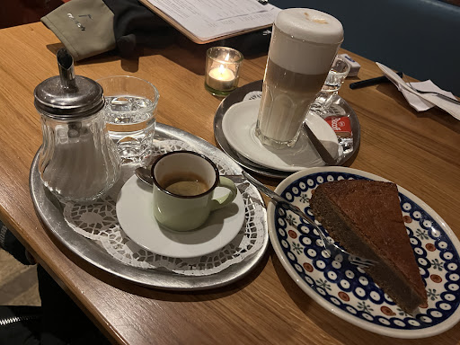 A hidden gem for sure! It was Sunday night, around 11 pm, and we were searching for homemade cakes. And guess what? We found this place. Impressions? The best cakes we’ve ever eaten! We ordered 4 pieces. Never tried some of these recipes before, and the chocolate cake was made without flour! Two of them were freshly made right from the oven. It was a fantastic experience. And the owners? It’s a family business, and you can tell they put their heart and soul into it. You can feel their energy – so friendly! At the end of the night, we talked a lot, exchanged ideas, and realized that one of the owners and I share the same country of birth. We were even given some house prosecco because we were celebrating something. Just amazing! Can’t wait to visit again. Don’t miss the spot – give it a big...