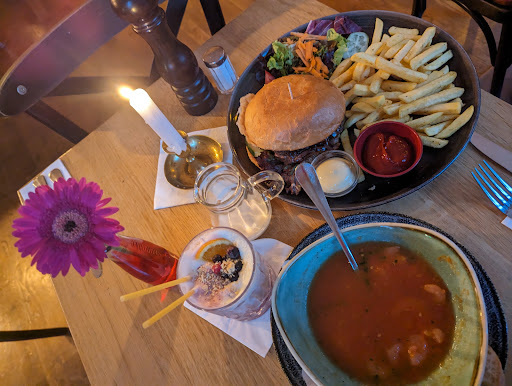 Essen gibt es hier von allen Nationalitäten. Aber ich muss zugeben, die deutsche und die indische Küche ist hier fantastisch. Die italienische so halbwegs. Mit einer Gruppe von vier waren wir unterwegs. Wir bestellten zwei Haidhausen Special Burger, eine indische Spezialität und ein mal Penne Arabiata.Die Burger waren fantastisch. Das knusprige Salat, die frischen Tomaten, der perfekte Patty, das cremige Käse und die Soße schmolzen in deinem Mund. Dann noch die Pommes dazu! Eine Delikatesse! Ich sollte nicht über dem indischen starten. Einfach excellent! Die warme Soße, das Fleisch und das gegrillte Gemüse ober drauf! So viel Lob an das Pasta kann ich leider nicht geben. Lauwarm kam es bei mir an mit ein bisschen Tomatensoße draufgeklatscht. Traurig dies überhaupt italienisch zu nennen. Als ob dies nicht schlimm genug wäre. Neben uns war ein Hund, der nicht aufhören konnte zu bellen. Der Arbeitsgeber sollte wirklich auf so etwas achten! Eine Unverschämheit!