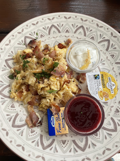 We went there today for a brunch. They served me a crab salad that was completely off, probably some leftovers that stayed for ages in the fridge, because when I’ve reported to the waitress that it tastes funny and seems old, she said that was the last portion they had! And she offered me an EGG as a replacement! Also charged me for the meal without any reduction. The rest of the breakfast was horrible as well including the cheapest bread you can get. Payed 10 euro for that experience. My friend got sick after his breakfast (different one, no crab salad), and I hope the rest of my friends won’t get sick too! Horrible place with awful decor. Only waitress was actually nice and hopeless for the situation with food, she could not handle the kitchen stuff I guess...Feel sorry for her. Don’t go there unless you want to take your enemy there who you want to...