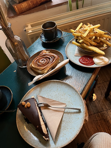 I loved this place! The interior was super cute and cozy. Their desserts were delicious, we tried the peanut butter cake and cinnamon roll. I wish I could come back here to try the other cakes! Their fries were also really good. Only downside is that we had to wait in line for around 1 hour. I understand that it’s a popular place and there aren’t that many seats, but it could be better coordinated. At times it felt like the staff was not actively watching if any tables free up for the people waiting outside in the cold. When we finally went in, we saw that there were two different tables available, which meant we could have sat down earlier. Maybe it was just on the Sunday we were there, but I hope they come up with a better...