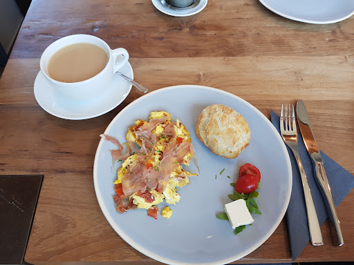 Speisen und Getränke: Es gab Rührei mit italienischen Schinken und Tomaten, dazu eine rustikale Krustensemmel. Geschmacklich war es ein Traum, auch die Zutaten haben sehr Wertigkeit gewirkt. Der Tee wurde lose in Sieb serviert, hatte einen Touch lavendel, war ebenfalls sehr gut.