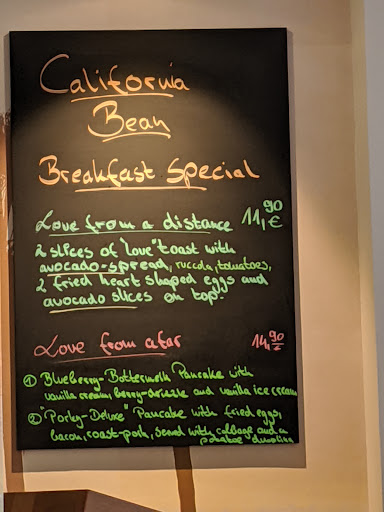 Read moreAn airy and bright cafe serving up California inspired breakfast food and coffee. The staff here are great! I walked straight here upon arrival in Munich with my luggage. The server that greeted me took my bag and made sure it was safe then escorted me to a table. I was told it was cash only but that I could order and dine then get money from an ATM down the street no problem. This was reiterated to me several times to ensure that I relaxed and enjoyed my meal. All the dishes are named after various areas in Southern California. Being from Los Angeles this tickled me. I wound up ordering the Hermosa Beach dish. It was hash brown with caramelized onions, cheese, bacon and fried eggs with some sprouts on top. The dish was filling without being too heavy. The bacon was to die for after being served the equivalent of sliced ham so many times in Europe and being told it is bacon. The bacon served here is a crispy, salty delight! Even though the restaurant was full, I was served in a timely manner and my server checked in with me several times while I was dining. After I finished my meal, I was directed to the ATM and returned in less than five minutes to pay cash for my meal. No fuss, no muss! As my first dining experience in Munich, California Bean did not disappoint. I can't wait to return and try other items...