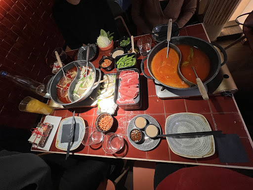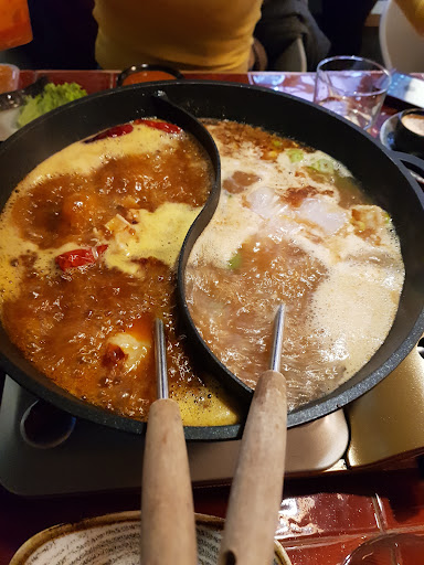 Read moreThe best hotpot restaurant in town! Get ready yourself for full booked reservations especially on winter time, so please book and make reservations in very advance. But absolutely recommended and worth it. The price quite expensive tho but you can eat up to 2hours with all you can eat menu. So i recommend to go on lunch at around 1pm until 3pm and don’t eat again for dinner. For the soup: combination between sichuan soup and mushroom soup is very nice. Sichuan has more Chinese spicy pepper with red colour and oil, it’s really spicy for me tho. And the mushroom has more clear broth and umami saltiness. That’s perfect combo of both. Other combination is between tomyum and tomatoes soup. Tom yum has more sour and fishy intense broth. And tomato soup is way more sweet and salty broth. Both of them good combo for you who doesn’t like spicy. Depends on the people you can order 4 people 4 broth and try to share everything. Here you eat per batch. So every 15 mins you can order next batch of order. These can be protein like mushroom, meat, meatballs, seafood, tofu, etc; or veggies like chinakohl, spinach, lotus root, carrots, potato, salat, etc; or carbo like rice, udon, wheat noodle, sweet potato noodle, vermicelli, etc. You can get also nuts and edamame and kimchi for starters. You will get also dipping like sesame paste, garlic oil, sweer sour sauce, mayo. In terms of drink I prefer to just order water because it will not make you very full. Don’t forget also to order matcha ice cream in the end. I like the place ambience, the waiters were very nice and fast. Just you have to order via phone so that make sure you have one phone to order. You can then pay with card or cash, very convenient. The place has 2 floors, they have wardrobe and clean toilets as well. The table maybe needs to be bigger bcs we have so many orders. Overall the taste is very good and absolutely 💯 recommend to try and will come back in the future 😋!...