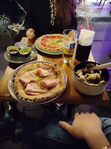 this place offers some very basic drinks and few options for pizza. i had just had dinner so i wanted something small, and there wasn’t anything in the menu to really satisfy that. these 9€ bread pieces with tiny bits of parmesan in them were okay at first but as they got cold i couldn’t eat them anymore. outside area is nicer than the inside. the turkish waitress was very nice, kind and attentive, shout out to her ❤️ other waiters weren’t so much (my friend asked from one of the male waiters for extra parmesan which we never got) all in all, cute place with a nice busy location if you want a quick pizza bite, but not the best pizza in...