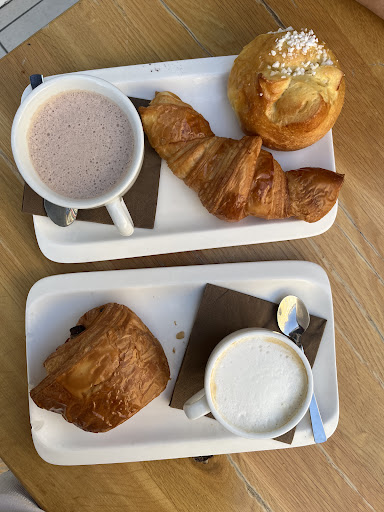 On both of my two visits, I was greeted by a very pleasant shop keeper lady who despite several customers in the shop did not appear stressed or rushed and handled my purchase of a pain au chocolate and a baguette with a pair of croissants with loving care. Considering myself a devoted coffee lover, I was also pleasantly surprised by a smart choice of the espresso machine / grinder setup and the skill with which she pulled an exceptional espresso shot.