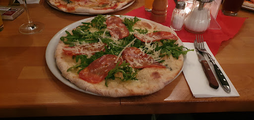Kann die positiven (echten?) Bewertungen hier ebenfalls nicht nachvollziehen. Wir gingen dort einige Mal hin (bzw. wurden von Münchner Kollegen "mitgeschleppt") und versuchten verschiedene Gerichte. Die Pizzen sind zwar verhältnismäßig groß, aber die Zutaten meiner Ansicht nach von extrem übler Qualität. Beim Schinken handelt es sich um billigstes Formfleisch von Aldi und Konsorten. Das gleiche gilt für den Käse. Das sieht man ja bereits daran, dass jedes Stück Fleisch haargenau gleich quadratisch und ohne jegliche Maserung ausfällt. Zudem hatte das Fleisch auch einen sehr üblen Beigeschmack, den es bekommt, wenn man es schlecht und zu lange einfriert. Jeder, der schon mal Sachen eingefroren hat, weiß das. Auch der Teig könnte bei Weitem besser und frischer sein. Das Öl auf dem Tisch halte ich für miserabel schlecht.