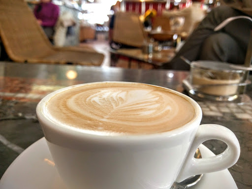 I rate the atmosphere 4 stars, since the jumble of coffee and espresso machine museum could really be interesting. Unfortunately there isn't too much room for guests, especially on weekends. The espresso is a solid 4 stars and overall I recommend the Espresso & Barista to espresso lovers. I consider the possibility to buy a large variety of coffees there a definitive...