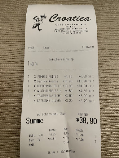 Read moreThe visit to the Grill restaurant Croatica was great. We had lunch relatively early on Saturday. The restaurant has just opened. There is a nice semi open terrace used as a winter garden. However the day was sunny and it was getting to earn for outside, so we say at one of the tables inside. The feeling was like at the sea side on a Mediterranean island which was created by the real paintings. The service was great. I got great Cabernet, then very tasty borscht, a fish recommendation and finally nicely decorated pancakes. Altogether unforgettable lunch if high quality...