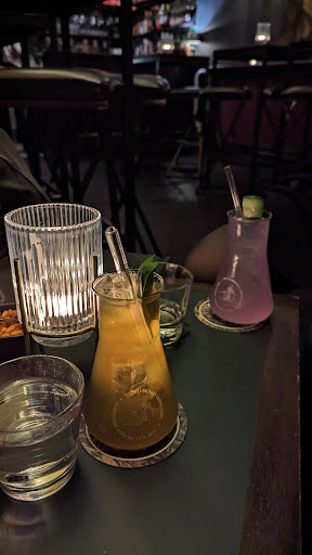 The place is directly linked to the distillery of the gin brand The Illusionist Gin (which is good) so you will find most cocktails are made with that gin.