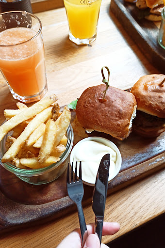 Read moreSo the place has an interesting concept, you get smaller burgers and sides so you can try more in one go. The visible food on the picture did cost us exactly 40€.