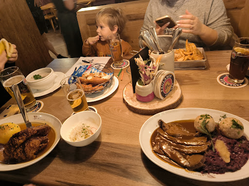 Our friends were visiting so we decided to take a tour around Marienplatz and on the way we just took a tourn to this place because it looked good from the outside. It is traditional Bavarian cuisine and a bier house for Paulaner. We got a table and it took a while for the waiter to come, but it was Saturday so... After that we got our food pretty quickly. We ate classic Weißwurste, hot dog with a lot of stuff in it, ox roast and pork roast. We stuffed ourselves so much we couldn't eat a dessert. Great place and great location. And plus points for the good service who gave our friends little son a coloring book to keep him occupied. I recommend this place, just try to avoid during...