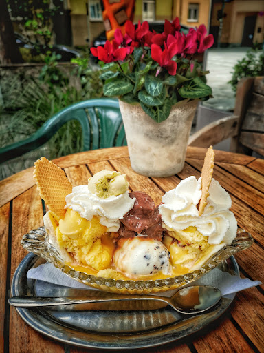Es fing damit an, dass der Herr hinter der Theke sagte wir den „reservierten Tisch“ nicht benutzen durften. Dann sagte die ältere Dame, dass dieser grundsätzlich „reserviert sei“ wir könnten uns doch dran setzen. ok. Kein Problem. Es waren noch Tische frei. An einen gesetzt. Dann hieß es, dass wir einzeln keine Kugeln haben könnten. „Mindestens 3 Kugeln“. Okay. Können das ja auch irgendwie teilen. 2 von uns haben Espressi bestellt. Die Dame ganz selbstverständlich und bestimmend „es ist aber ein doppelter“. Ja auch fein für uns, auch wenn der Ton nicht wirklich nett war. Der 3. sagte (da wir ja nur 3 Kugeln in einem Pott bestellen durften) „Ich hol mir dann später was auf die Hand“. Die Reaktion der Dame: schnäubend. Ich sagte „ich hätte gerne eine Sprite“. Steht mit Preis in der Karte. Ekelhafter Ton: „haben wir nicht“. Ich sagte dann, ich wollte nichts weiter. Sie dreht sich um und murmelt „und dann noch hier an den Tisch setzen“.