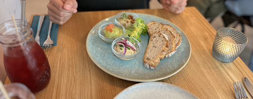 We got the Emmi and the American pancakes for brunch. The Emmi mixed platter was a nice surprise of tofu scrambled egg, their seed bread (which is delicious), 2 spreads and a lovely coconut reismilch. All in all a nice diverse and tasty platter that I can recommend. The pancakes were rather disappointing. After seeing so many delicious photos online we had high hopes for the pancakes. They were sadly undercooked and tasted of baking soda/baking powder which can happen if you try to get them so fluffy and thick. The trick is to get fluffy pancakes that are fully cooked and you don’t overdo the baking powder. We thought that maybe we only got a bad batch but the ppl next to us on both sides had also ordered them and in the middle of the pancake stack you could see that they were undercooked.