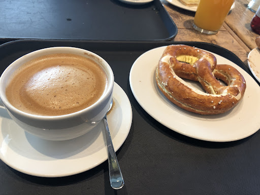 We were desperate for good tasting coffee and a good breakfast … the place seemed very popular with long queues waiting to enter, we had there the best Coffee I had in days since I arrived to München! I had as well butter-pretzel which was simply from heaven! Crispy with plenty of butter as well as chocolate Croissant which was fresh and super tasty, the kids tried the Käsekuchen with Mango and strawberry .. all food was of a high quality and super delicious, the people there are so friendly as well, they gave us freely two small cups of chocolate milk, I really enjoyed taking breakfast there and would definitely go there again if I come...
