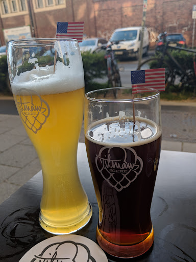 Really great local bar! The Hopfenbohne coffee stout is a (medium brown, not black) throwback to the "higher alcohol" definition of stout about 2 centuries ago. Very nice and present coffee flavor! Sidekick is fantastic and not as cloyingly sweet as I'd expect from most 9% beers. We tried some of the snacks (eggs + Fleischpflanzerl), very tasty and nice to get a hearty mini-meal at a decent price. Strong work by Max +...